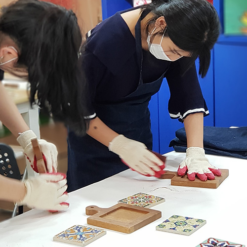 물감과 미디엄의 유동적특성을 이용하는 아트로 우연의효과를 이용하여 대리석과같은 자연스러운 아름다움을 표현하는 작업입니다.